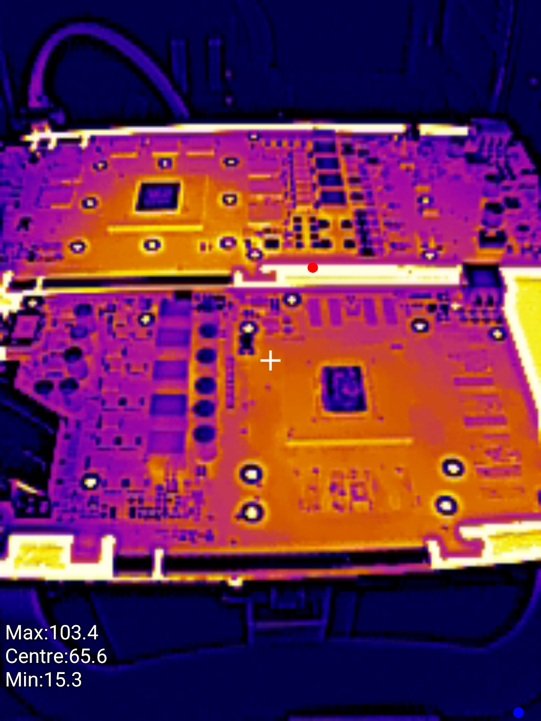 Put the board on the preheater and leave it there for 10-15 minutes. Let it slowly get up to temp. I got my thermal camera out and took these cool images: