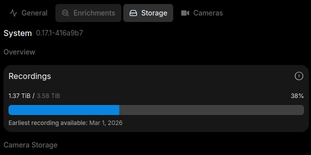 Just checking my camera server and noticed my 4TB NVR drive is almost full. WTF? Frigate has auto cleanup. Then I discovered it. I was supposidly using 8TB/4TB according to frigate webpage. Yes I fucked up, forgot to take a screenshot before, just believe me. This means the frigate DB is not being synced with the actual data. This is actually good default behaviour, prevents the disk trying to cleanup every single time, which can strain low powered edge devices. FYI I already deleted all the recordings in the past few months, which freed over 2TB.