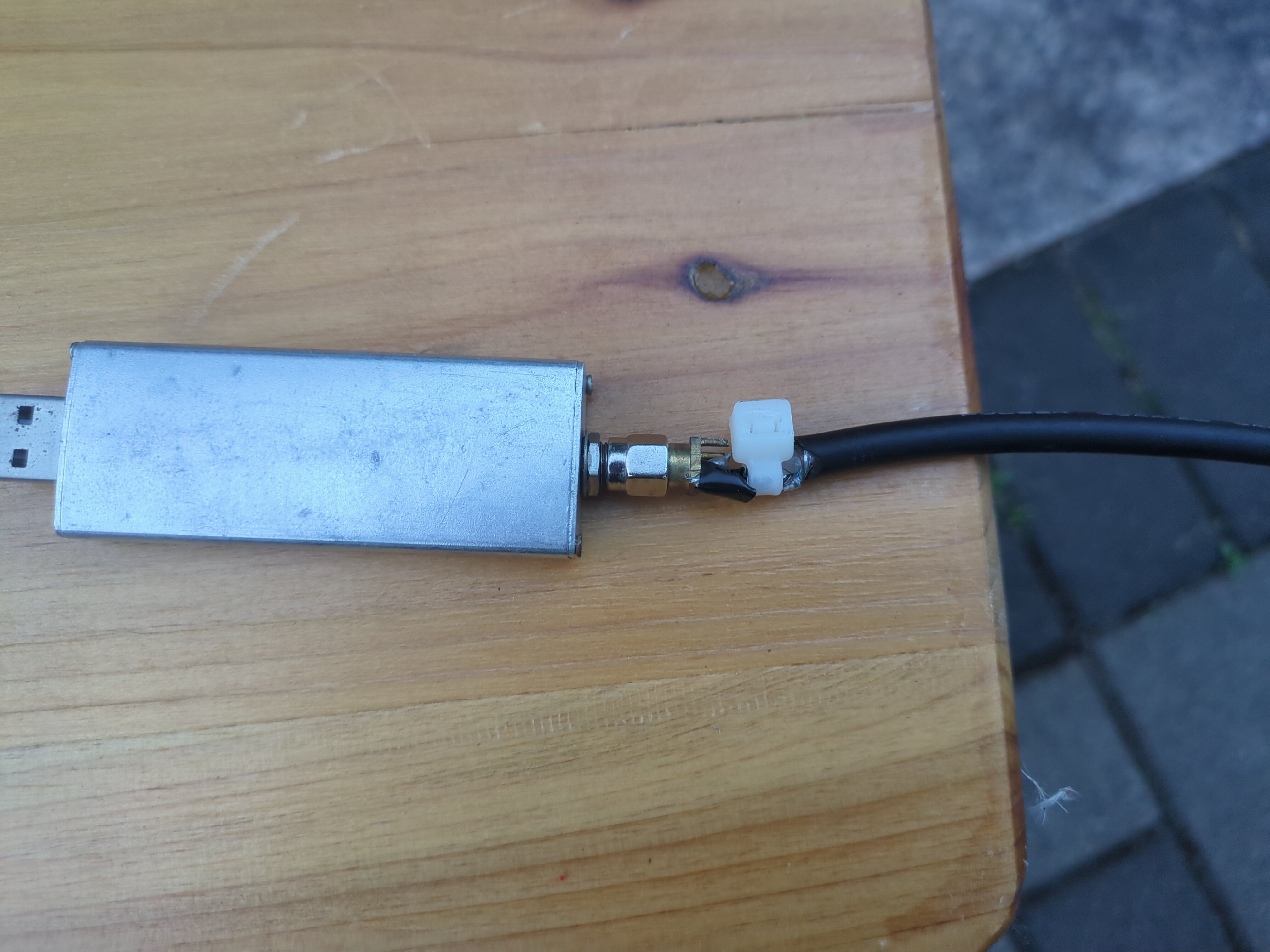 Went and rebuilt the extremely simple V-dipole. Simply cut 2 single core copper wires to around 50cm in length. Solder it to a coax cable and terminate it at a SMA male(NOT RPSMA male!!!) connector. Screw the other end into the RTL SDR or whatever SDR you have. Here is my setup: